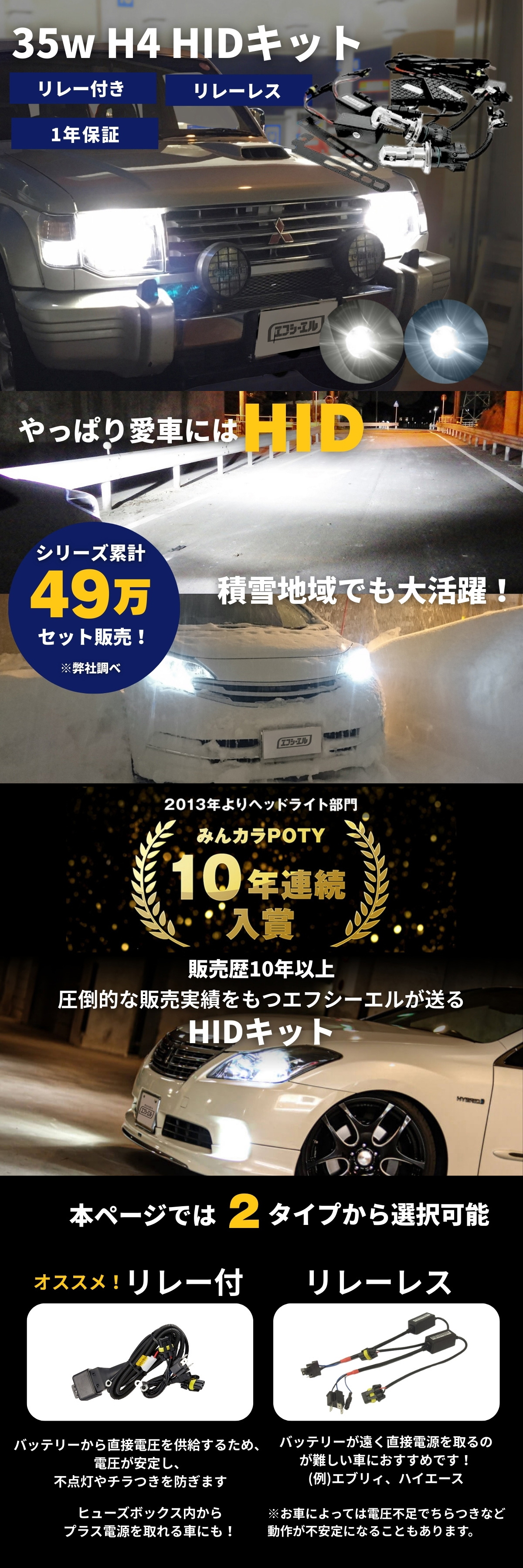 35W H4 H/L HIDキット (リレー付き・リレーレス)